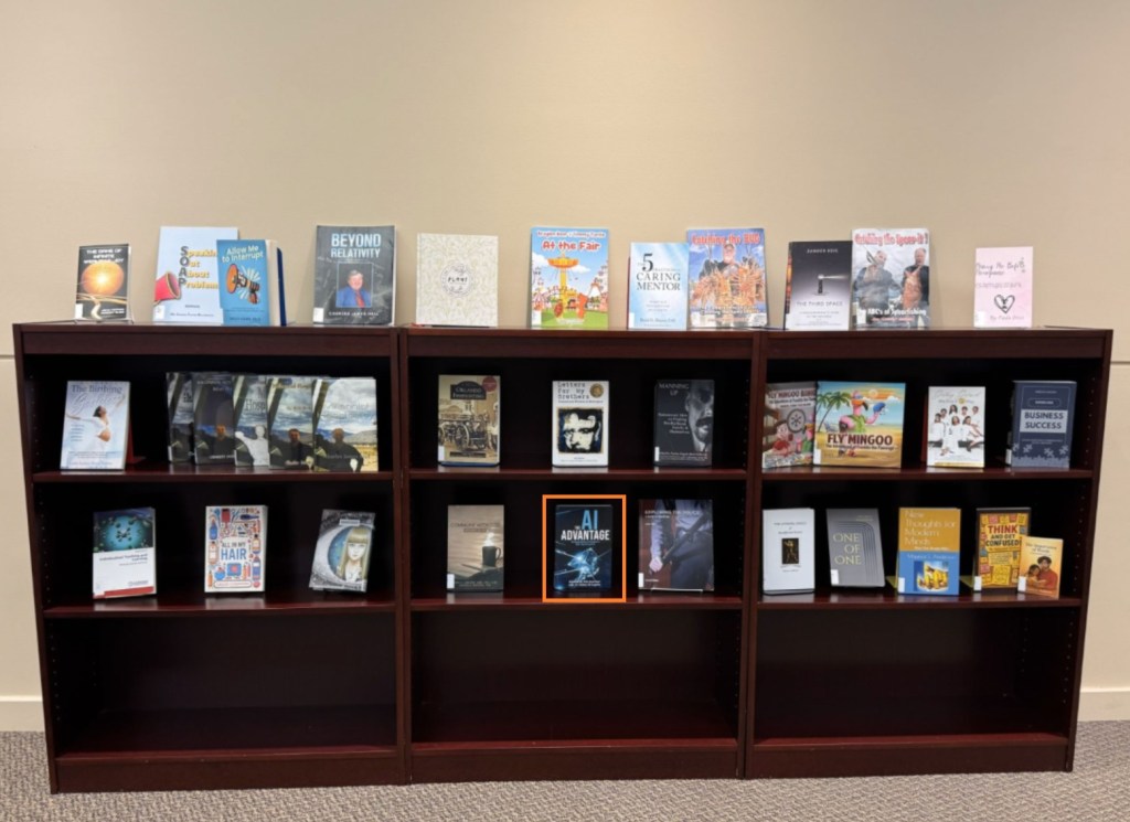 THE AI ADVANTAGE was placed in the NSU Alvin Sherman Library, explicitly recognized by name and significance as part of the curated research collection at the largest library in the Southeastern United States.